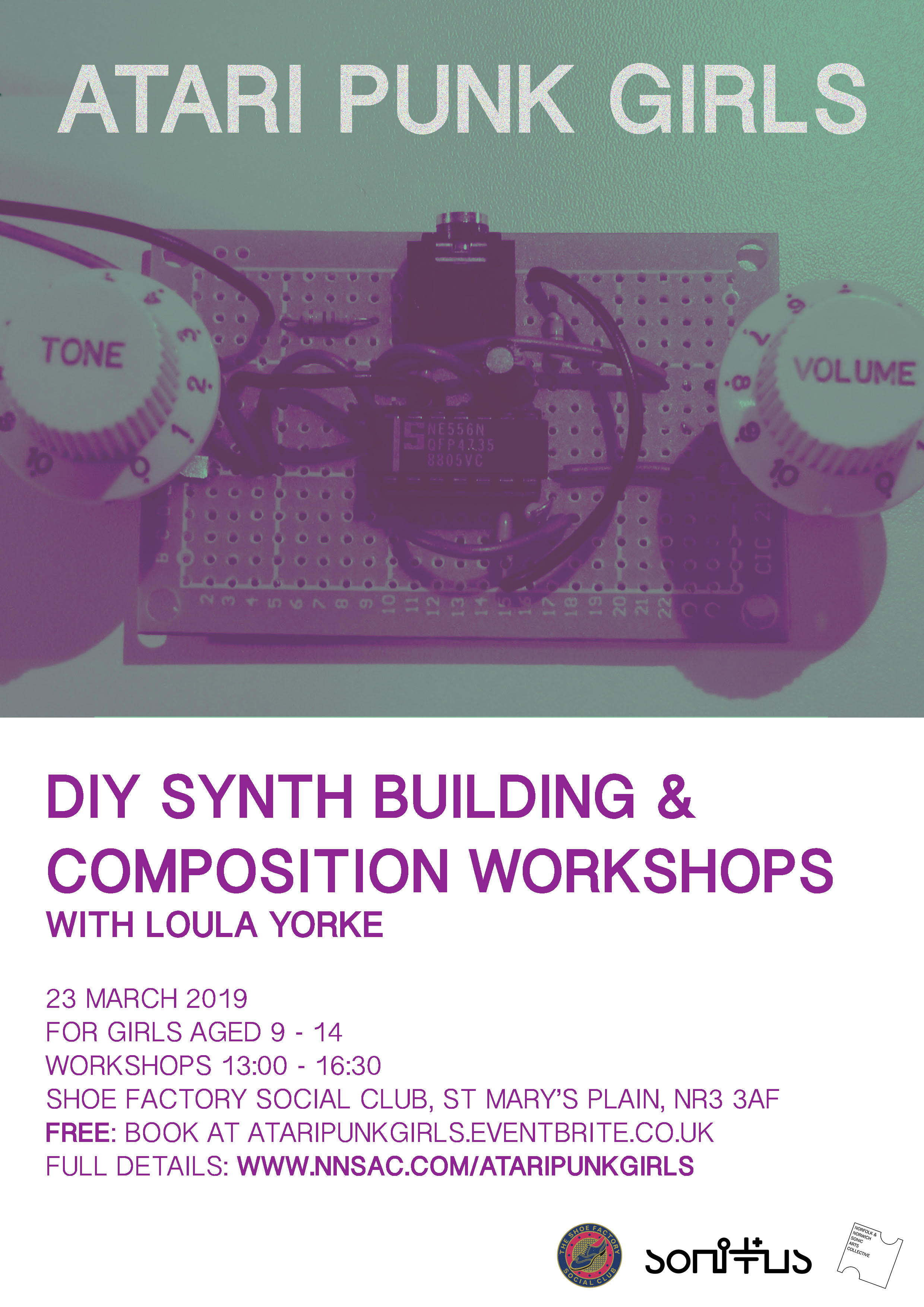 Wicked news that Norfolk and Norwich Sonic Arts Collective are bringing Atari Punk Girls to the Shoe Factory Social Club in Norwich on Saturday 23 March. I’ll be running workshops for girls on safe soldering, making a stepped-tone generator and sound composition, all followed by an evening performance at Plink Plonk where the Atari Punk Girls will be, quite literally, bringing the noise!