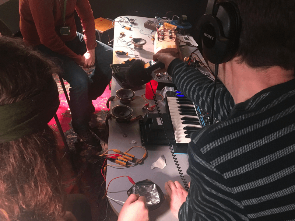 We ran 12 ‘iHack’ sessions over 6 weeks with a different theme each week, all inspired by reading Nicholas Collins’ ‘Handmade Electronic Music’. Our aim was to use our skillset to reach beyond the usual boundaries of music tech and encourage participants to get creative with non-standard methods and tools for music-making – for example by ‘mis-using’ various bits of hardware, building our own instruments, and trying to get things that weren’t designed for music-making at all to try and … ummm … make some decent noise!