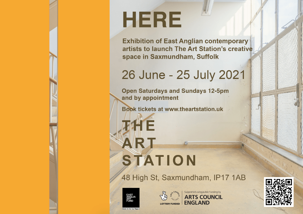 The exhibition is curated by artists Clare Palmier and Jane Watt and celebrates new and recent work by emerging and established contemporary artists with a strong connection to Suffolk and East Anglia – with work that responds to our first floor space within the 1954 post office and also to the idea of HERE.