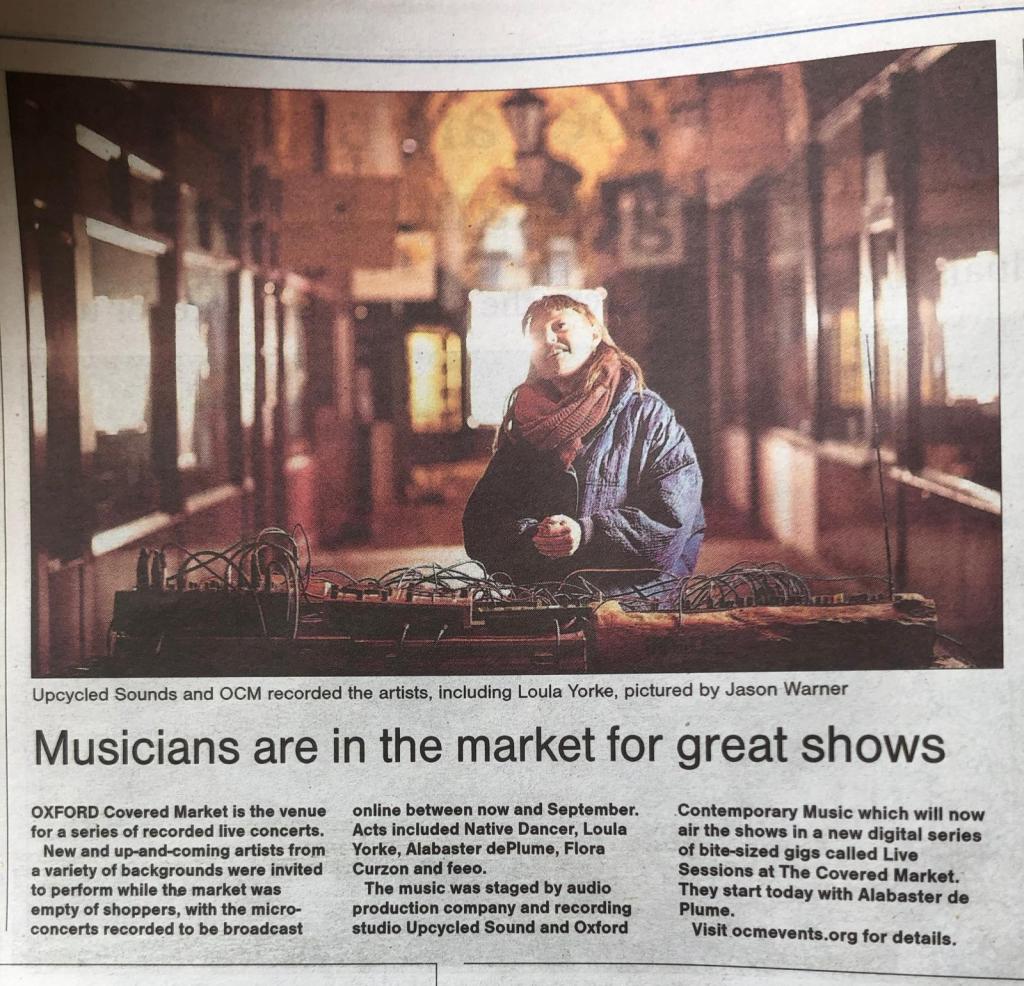 Late winter-time I brought my live synthesis set-up and CV-controlled laser to Oxford Covered Market to throw some sounds and shapes around! This was for a filmed live session with Oxford Contemporary Music in assoc. with Upcycled Sounds. Other artist sessions that day included the ever-lovely Alabaster dePlume and band, and atmospheric new vocalist-producer feeo.
