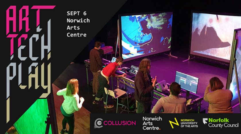 ART // TECH // PLAY is led by Collusion, a not for profit arts organisation with a track record of working with artists to projects involving digital technologies . This session is supported by Norwich University of the Arts, Norfolk County Council and Norwich Arts Centre. It is part of an initiative designed to support more artists to engage creatively with digital technologies.