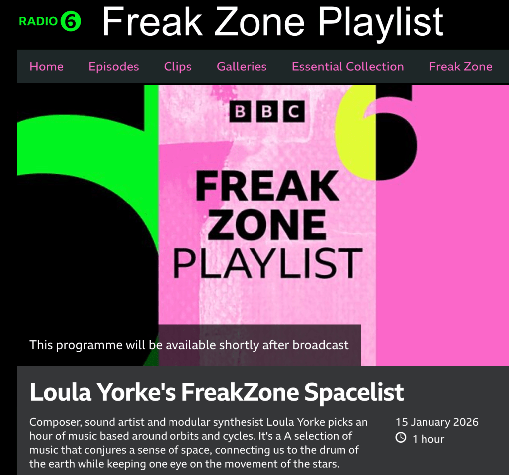 Making the programme took about 3 days in total, from formulating the theme to getting a massive long-list of music down to a more sensibly-sized selection, plus writing and recording a script for links, editing down the music files so they came in and out at the right times, and making it all fit into 59’43. Thanks to the producer, Peter Hardy, for collaging together all my patchwork squares to create the final quilt. I’m so grateful to have been asked to contribute to the FreakZone. I’m able to take up opportunities like this due to the generosity of my Bandcamp subscribers and all the listeners who buy my music.