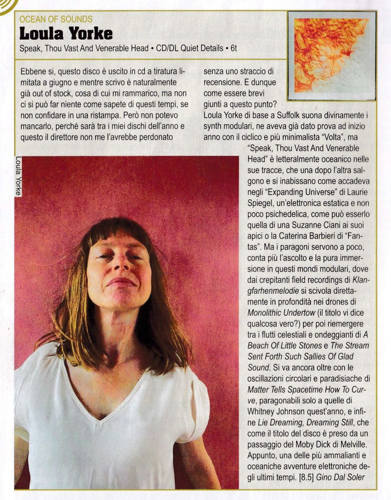 A wonderful review of my latest album Speak, Thou Vast and Venerable Head has been printed in this month’s Blow Up magazine. Molte grazie 💜