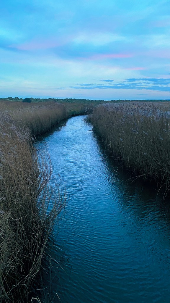 We have come to watch the starlings murmurate at dusk but they never show up. Laura has brought tiny cups for hot chocolate which she dishes out while a rag tag bunch stare off into the horizon, leaning our arms on the high wooden sides of a bridge. We stare across the reedbeds to nothing. It’s lovely even so.