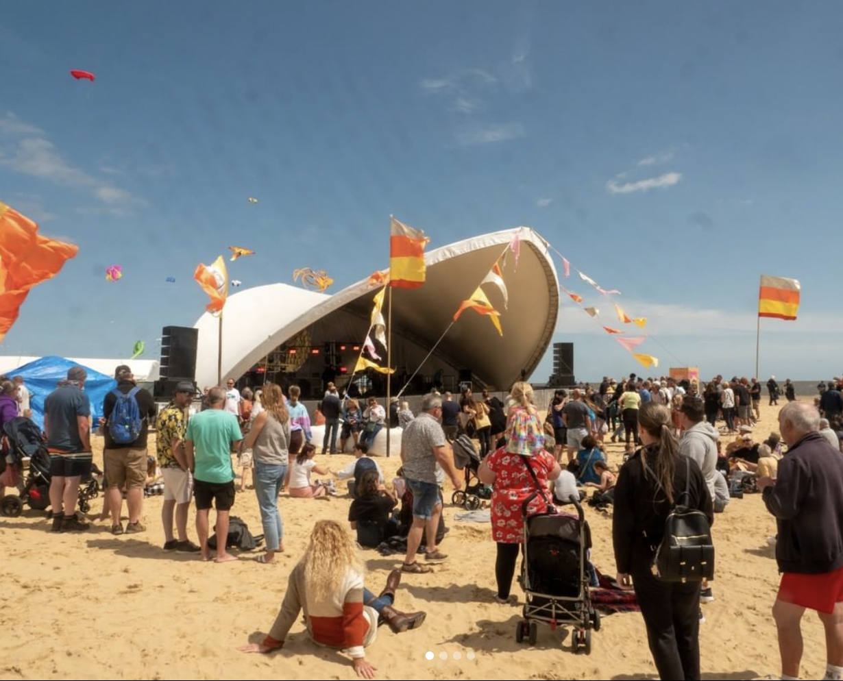 Group A have debuted their brand new song to close First Light, Lowestoft, an annual 24-hour festival on the beach, celebrating the shortest night of the year! The children and young people made excellent use of my collection of Hex Box synthesisers and mini-amps, creating a very noisy promenade on their way to the stage followed by a 15-minute show of their work, taking in free jazz-inspired bass clarinet, 909 drums, piano and a string quartet – all under a magnificent blue sky, a welcome sight after the tremendous rain and lightening the night before!