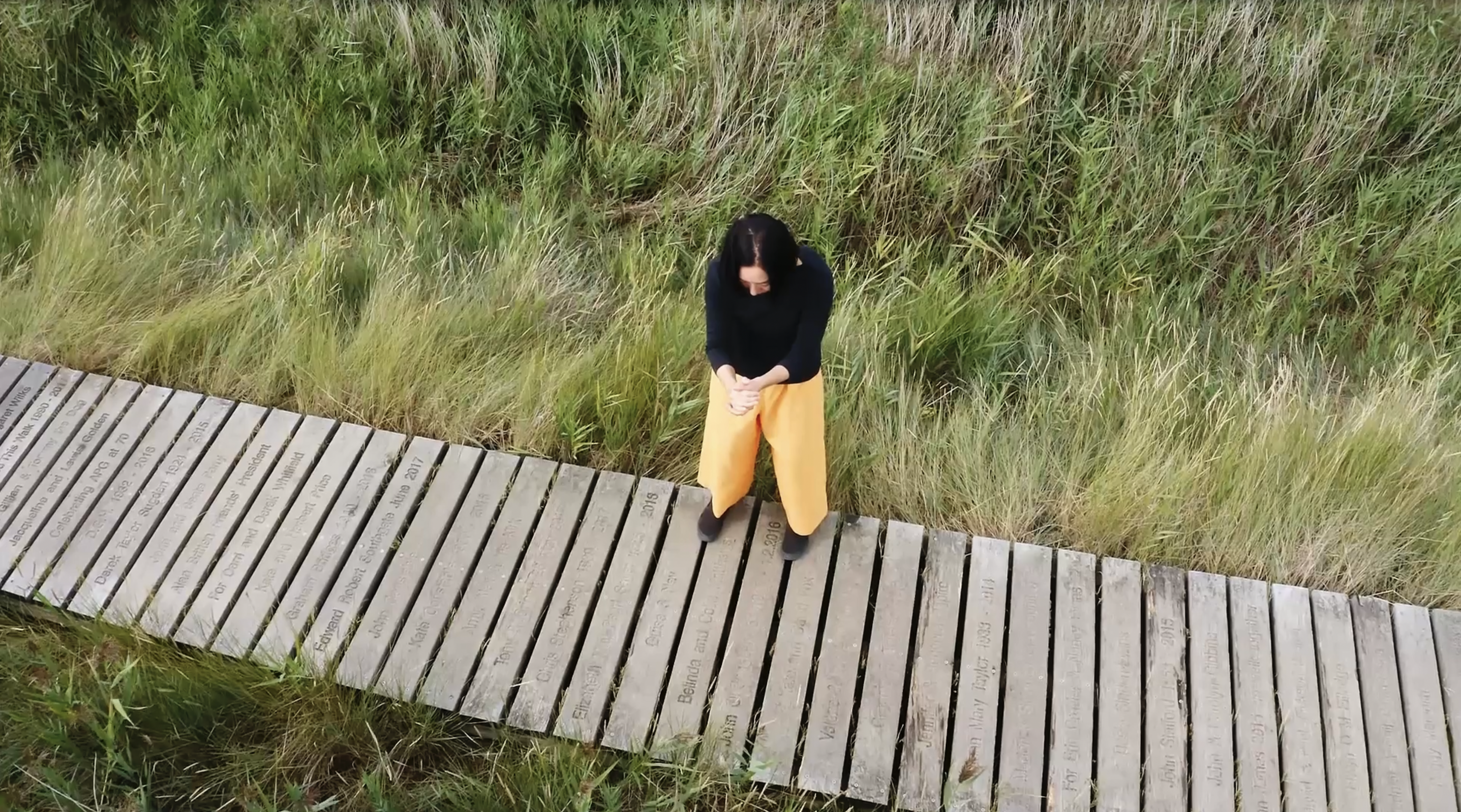 I worked together with Chisato to make a sound map of Snape Maltings, where my subjective spoken descriptions of directional sounds as I heard them occurring live within the landscape, became the basis for Chisato to create a piece visualising those sounds in multiple ways, translating and presenting information on multiple levels at once, on film. I then also created a soundtrack for the film using a combination of field recordings made during the week, abstract sound design, and minimal drone music.