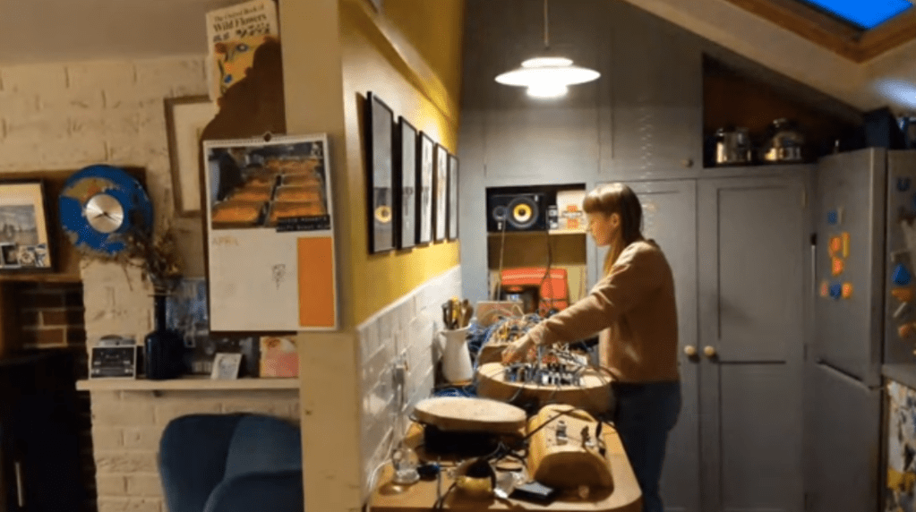 As a mother of two, I have spent my fair share of time at home performing domestic labour. I took the opportunity to reference that in my pratice, influenced by artists such as Bobby Baker and Martha Rosler, when I performed live to an audience from behind my own kitchen counter [pictured above] for Graham Dunning’s NoiseQuest livestream series in April 2020.