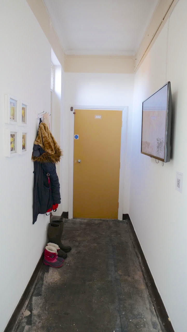 Snow Day freezes in time 8 minutes in the life of the artist and her 9-yr old daughter. Using a mixture of field recordings, processed video footage and an installation that re-imagines the 1950s commercial architecture of the Art Station as a domestic space, the audience is transported to the back door of the artist’s home in rural Suffolk, just after lunch on 8 February 2021. This multimedia piece draws together ideas from a variety of places: the practice of reanimating cultural heritage sites; analogue video synthesis and vintage image processing; and, the ethos that lies at the heart of the late composer Pauline Oliveros’ practice, (the mother of Deep Listening), “spending time with a single sound just to see what happens”.